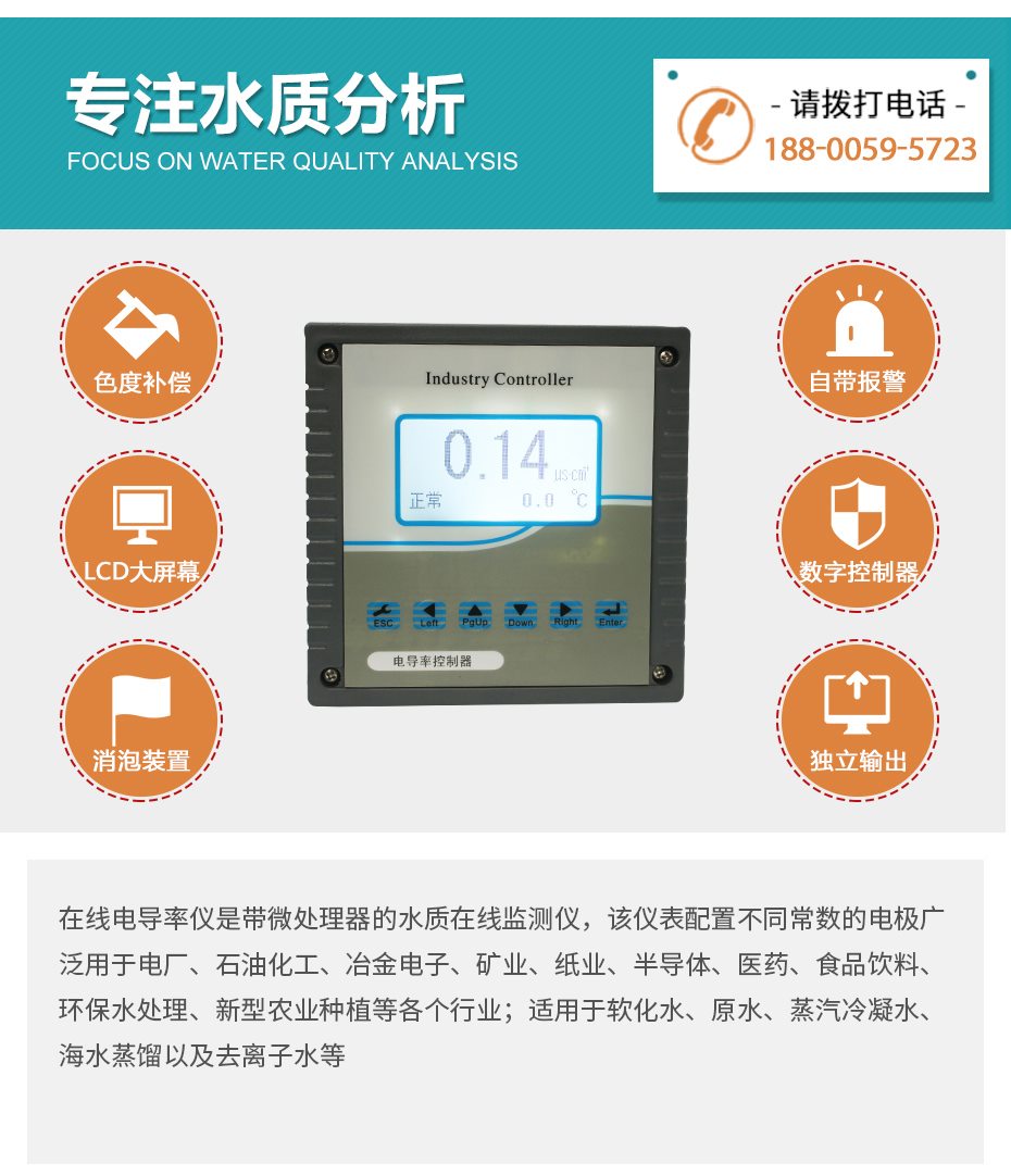 在線電導率儀是帶微處理器的水質在線監測儀,該儀表配置不同常數的電*廣泛用于電廠、石油化工、冶金電子、礦業、紙業、半導體、醫藥、食品飲料、環保水處理、新型農業種植等各個行業;適用于軟化水、原水、蒸汽冷凝水、海水蒸餾以及去離子水等。